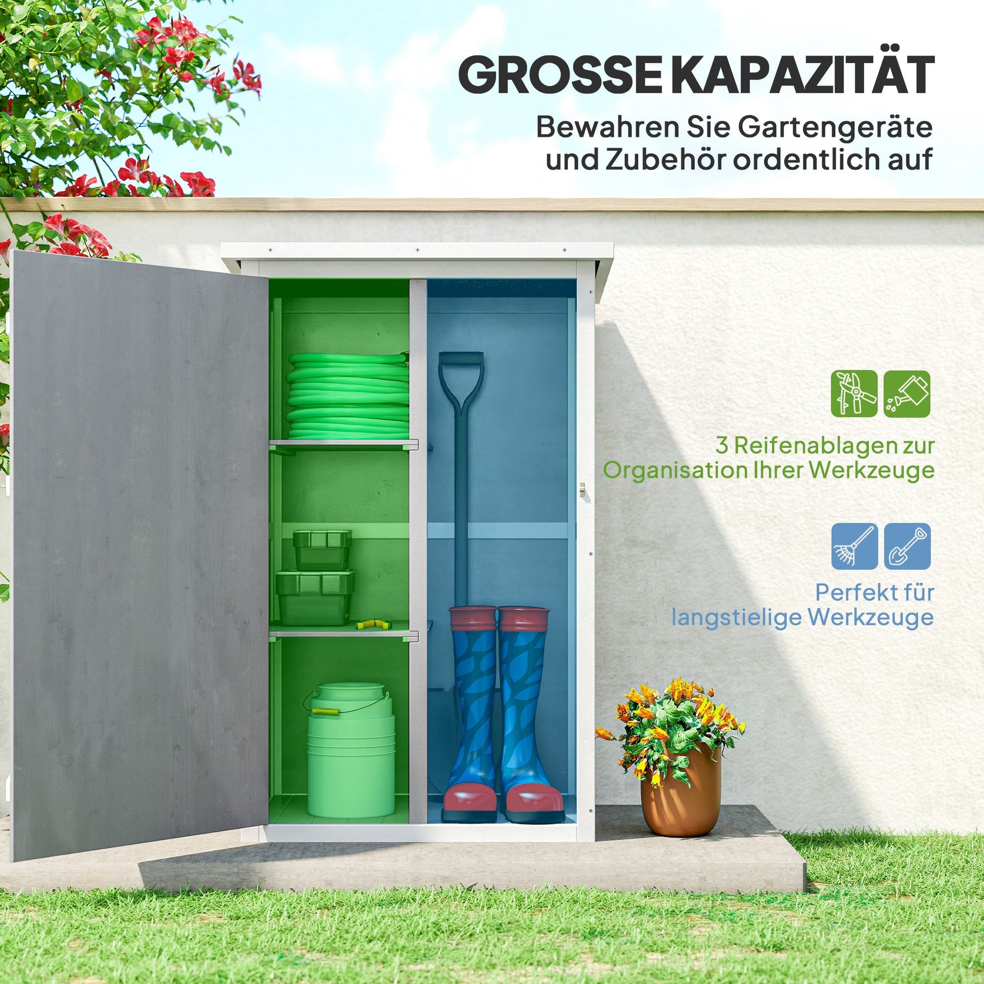 - ✔ Kompaktes Design des Geräteschranks gut geeignet für kleinere Außenbereiche