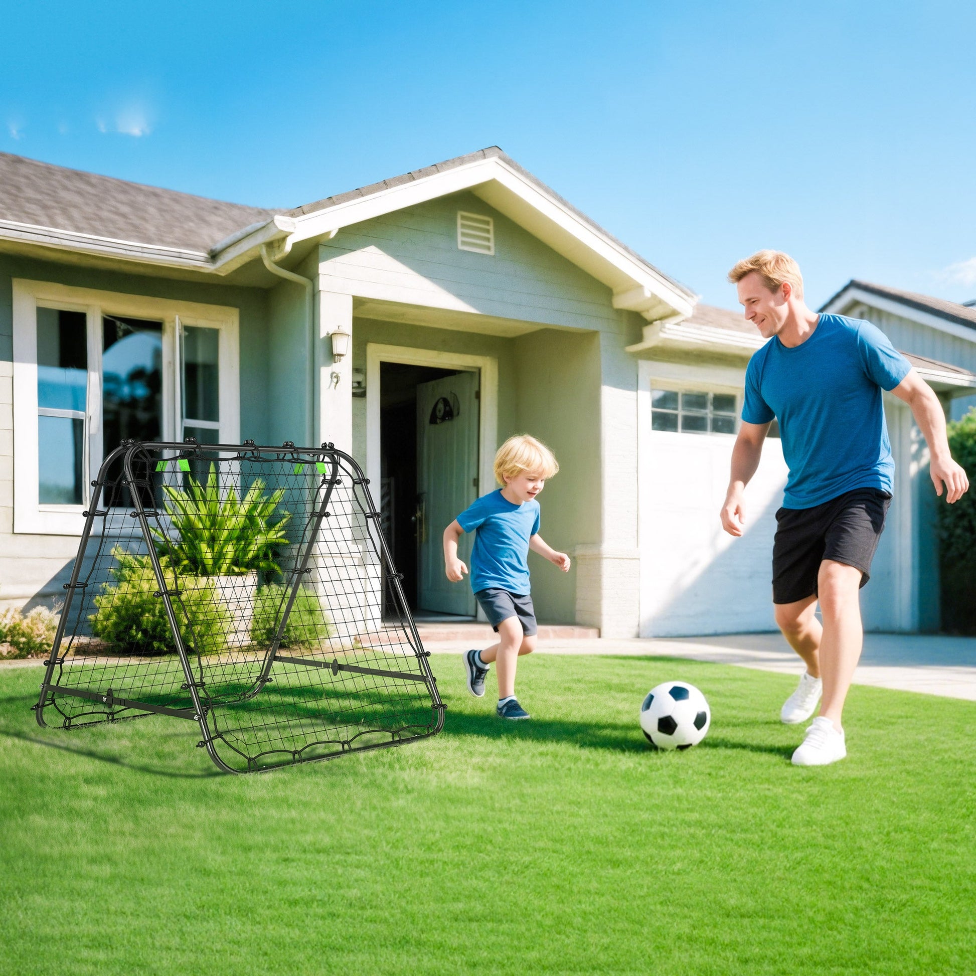 Halten Sie Ihre Kinder aktiv und fördern Sie ihre Sportlichkeit mit unserem klappbaren Fußball Rebounder! Dieses innovative Rebounder-Netz ist ideal, um die Hand-Augen-Koordination zu verbessern und gleichzeitig die Genauigkeit, Kraft und Ballkontrolle zu trainieren. Perfekt für das Üben von Pässen, Halten von Bällen, Kopfball und Schüssen. Dank des Montagezubehörs ist der Aufbau des Fußball Rebounders kinderleicht. Holen Sie sich das perfekte Fußball- und Handballtraining in den eigenen Garten!